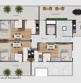 Plantas inteligentes com opções de Studio personalizavel, 1 banheiro, cozinha e sala de estar, com sacada ou Garden.