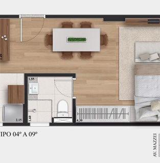 Plantas inteligentes Studio personalizavel, 1 banheiro, cozinha e sala de estar, sem sacada.